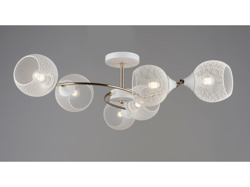 Модель має золоту металеву основу та білі плафони, що гармонійно поєднуються, створюючи елегантний образ.